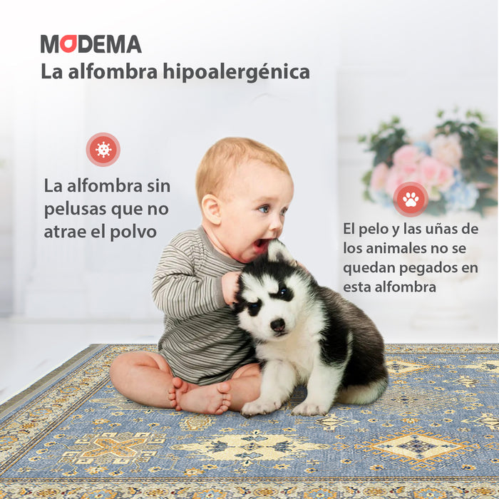 Lavable en lavadora, base antideslizante, sin pelusas e hipoalergénica.